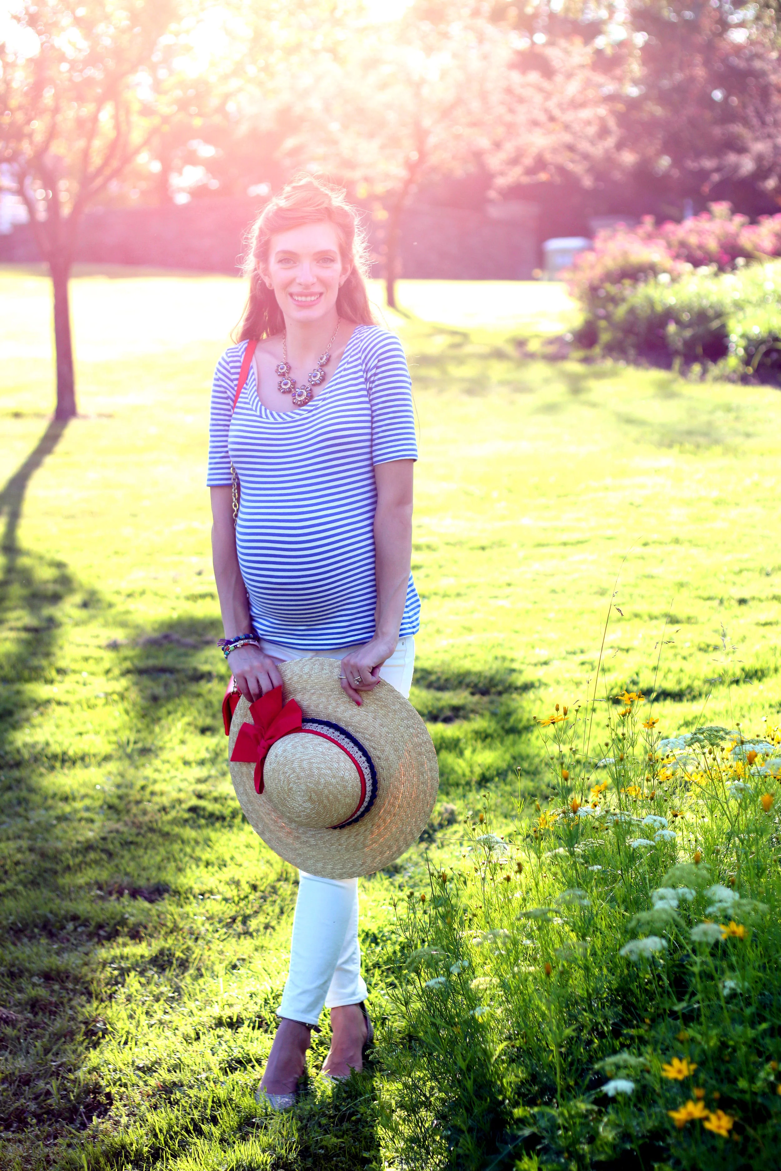 Necklace: The Shopping Bag c/o || Hat: Vineyard Vines || Top: Mark || White Skinny Jeans: Target || Wedges: Target || Nail Polish: Essie Fiesta || Bag: Banana Republic