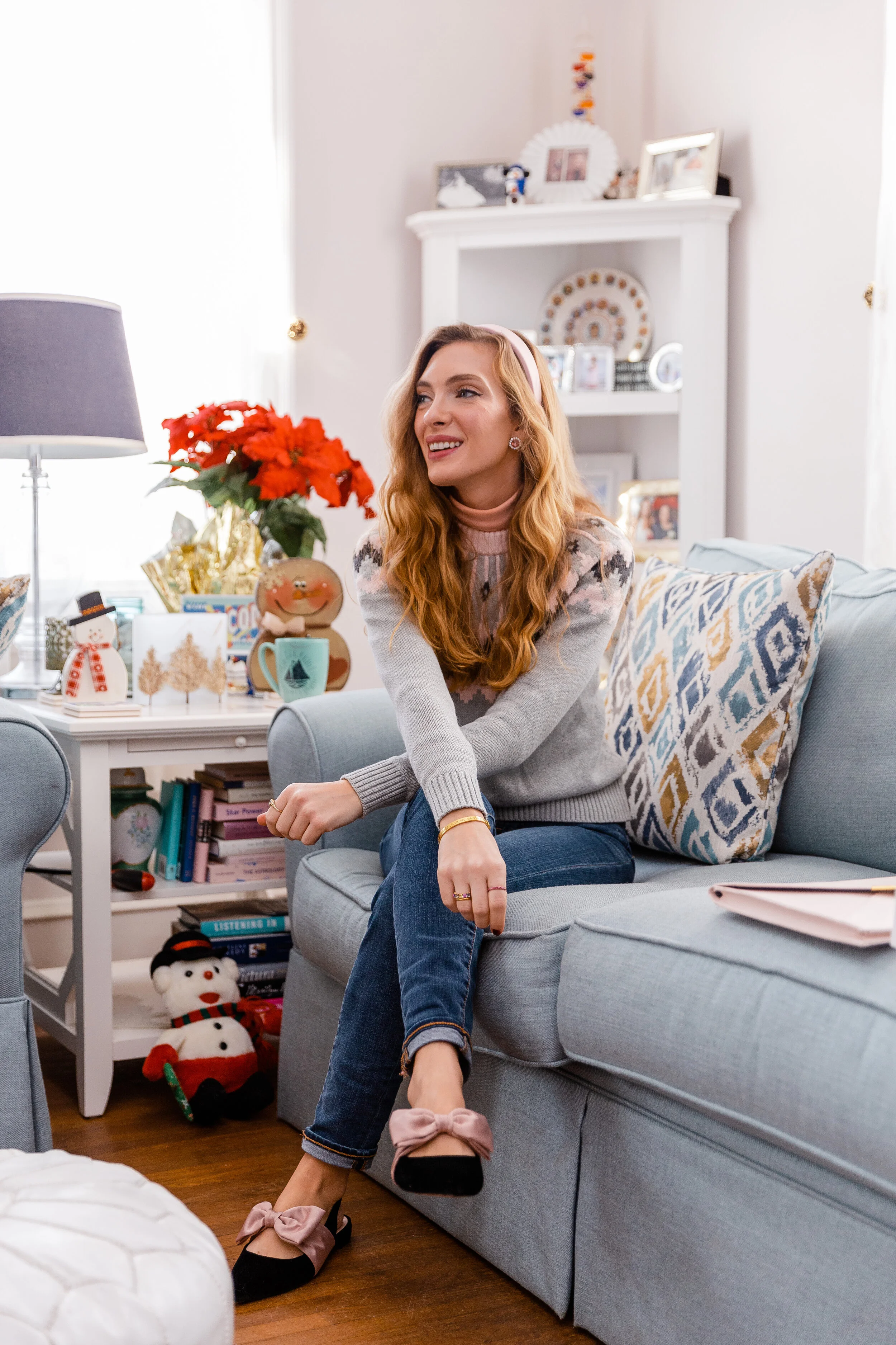 Happy Friday, friends! Fair Isle prints bring out the winter nostalgia in me. It’s a striking design that always seems to bring about joy with images of sipping hot cocoa by the fire side, decorating Christmas trees, sledding down a hillside, or watching my friends hit the ski slopes. This classic piece is a sure fire way to celebrate the season! They’re also an excellent gift to give your friends and loved ones. One of my dear friends gave me a fair isle sweater a few years back that I continue to wear to this day. They never go out of style! Opting for a casual elegant ensemble, I added a few dazzling pieces with these gem earrings and these pave and crystal rings. The blush vanity bag adds a touch of vintage charm along with these velvet bow flats, which make my heart sing. Bows, always. Find more of my fair isle favorites below and cheers to the weekend!