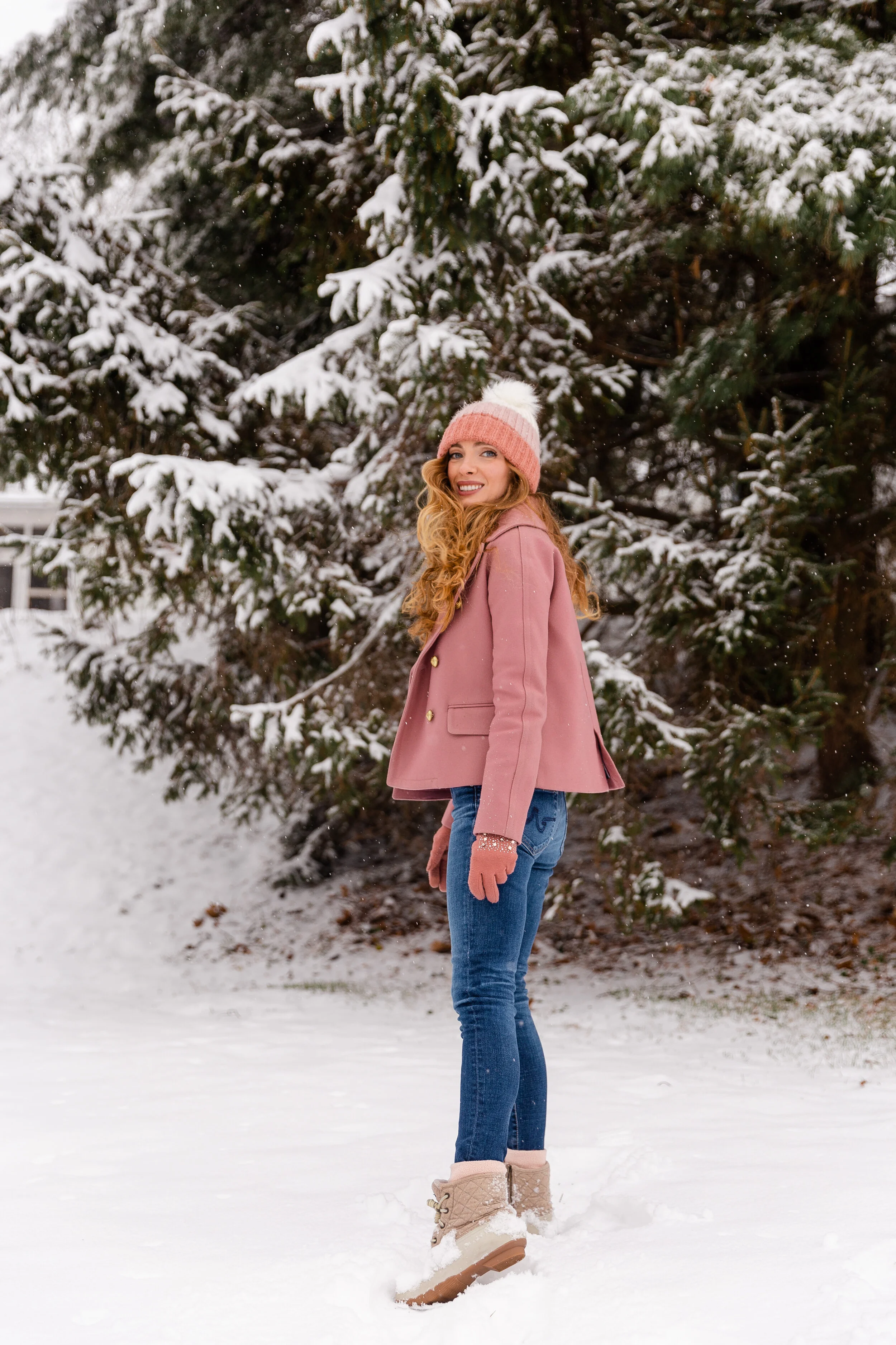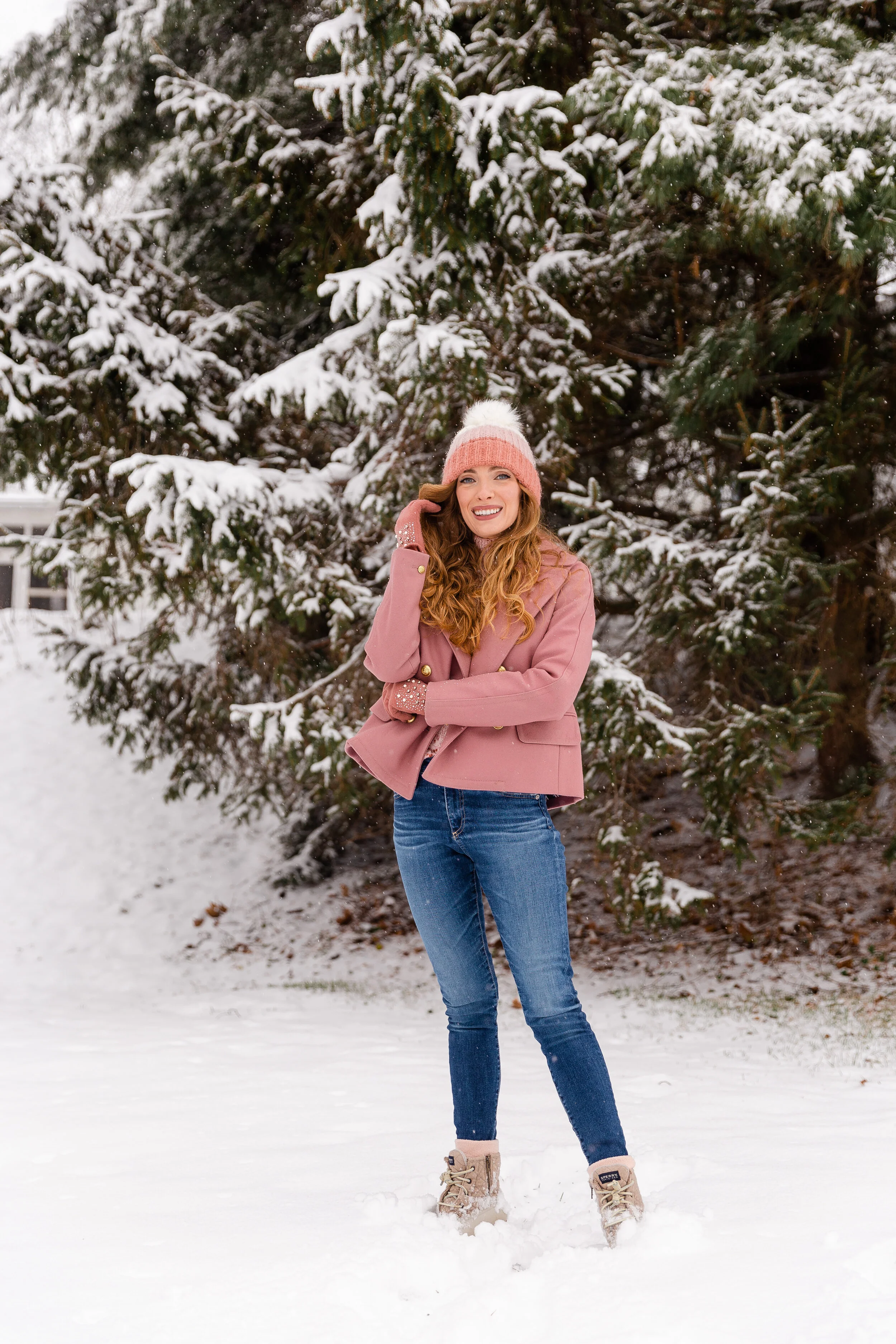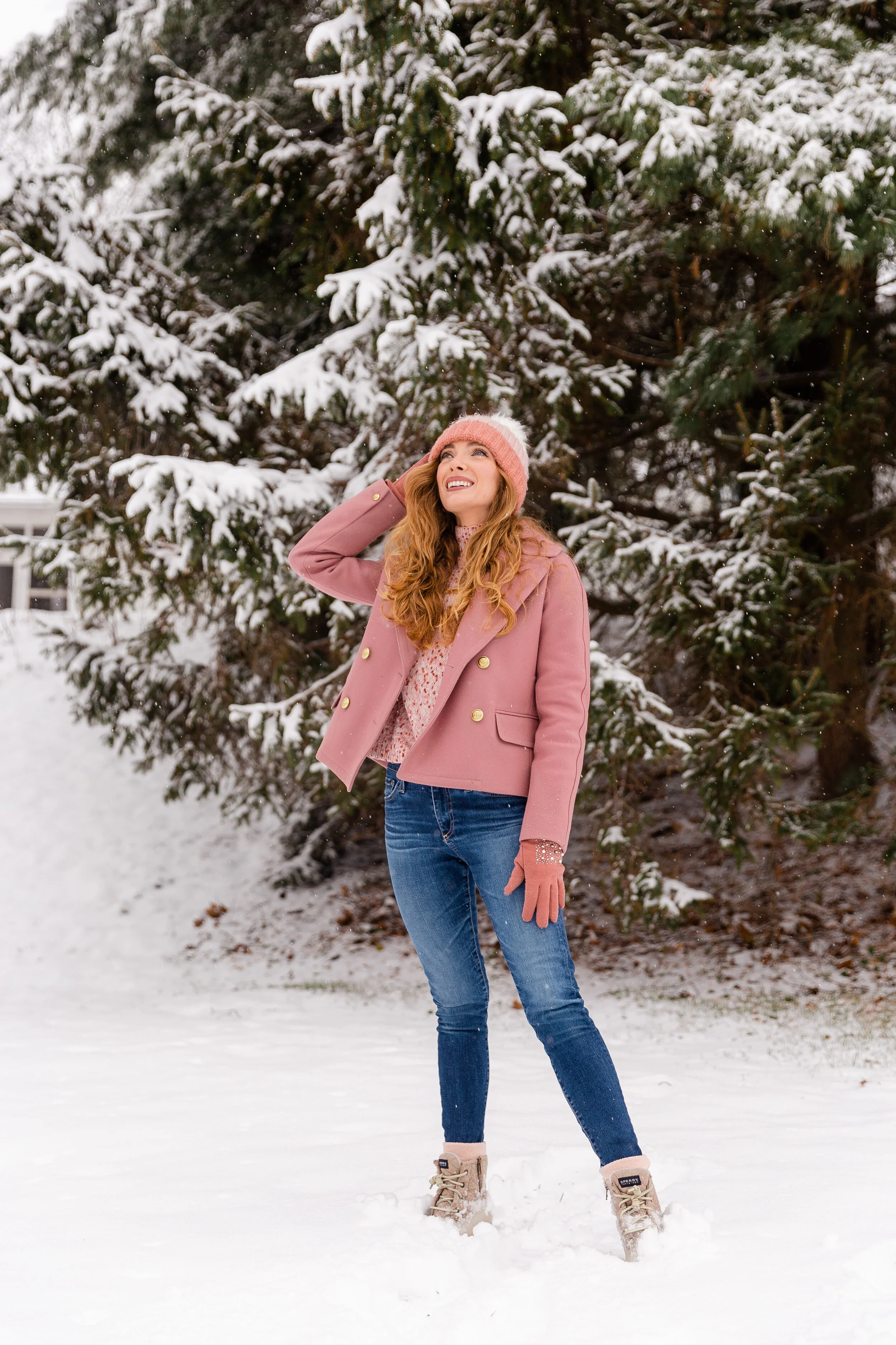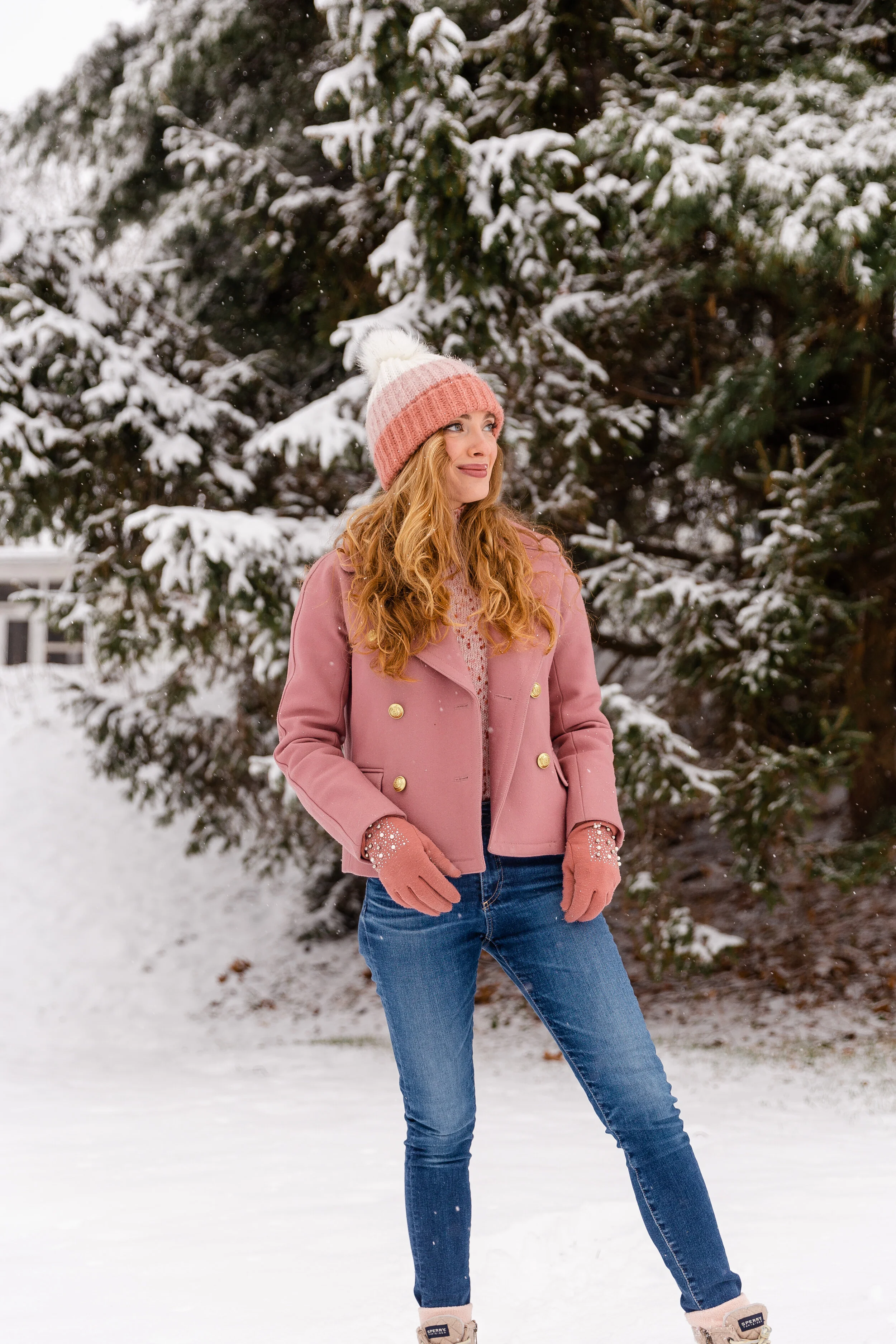 One of the most magical experiences during this time of the year is waking up to a winter wonderland right outside of your own window. Snowflakes falling, trees glistening, kids laughing, the crisp cool air blowing, and of course the smiles on everyones faces as they enjoy the frosty weather. The only thing better may be a nice cup of hot cocoa warming your hands and heart! Staying bundled up and toasty in your favorite cold weather gear ensures for a fun and memorable time. Below are my current favorite outdoor winter accessories, in none other than my favorite color of pink, to keep you snug as a bug this winter season.