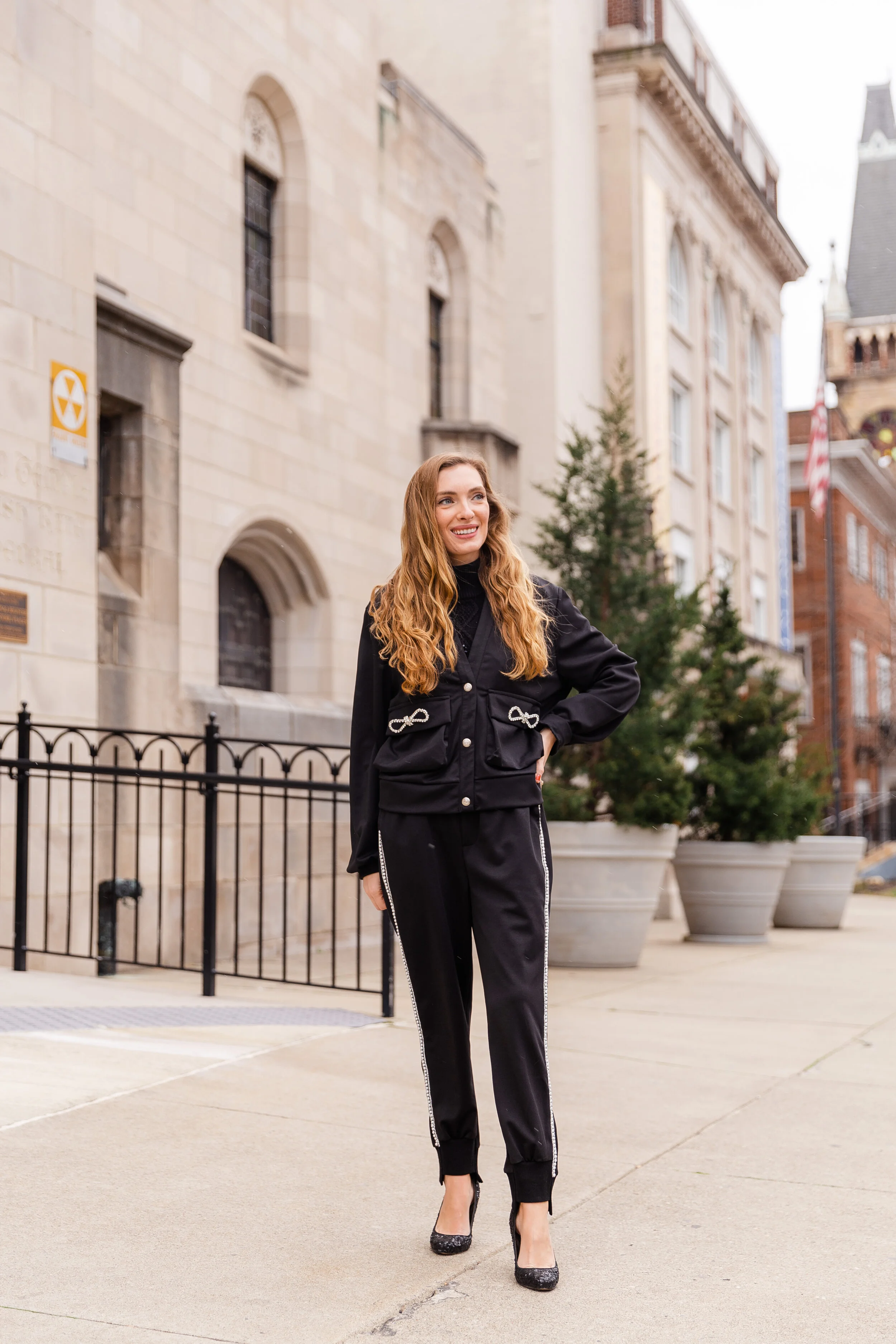 Embellished Cardigan And Joggers Set c/o || Similar Sequin Heels || Similar Black Sweater ||