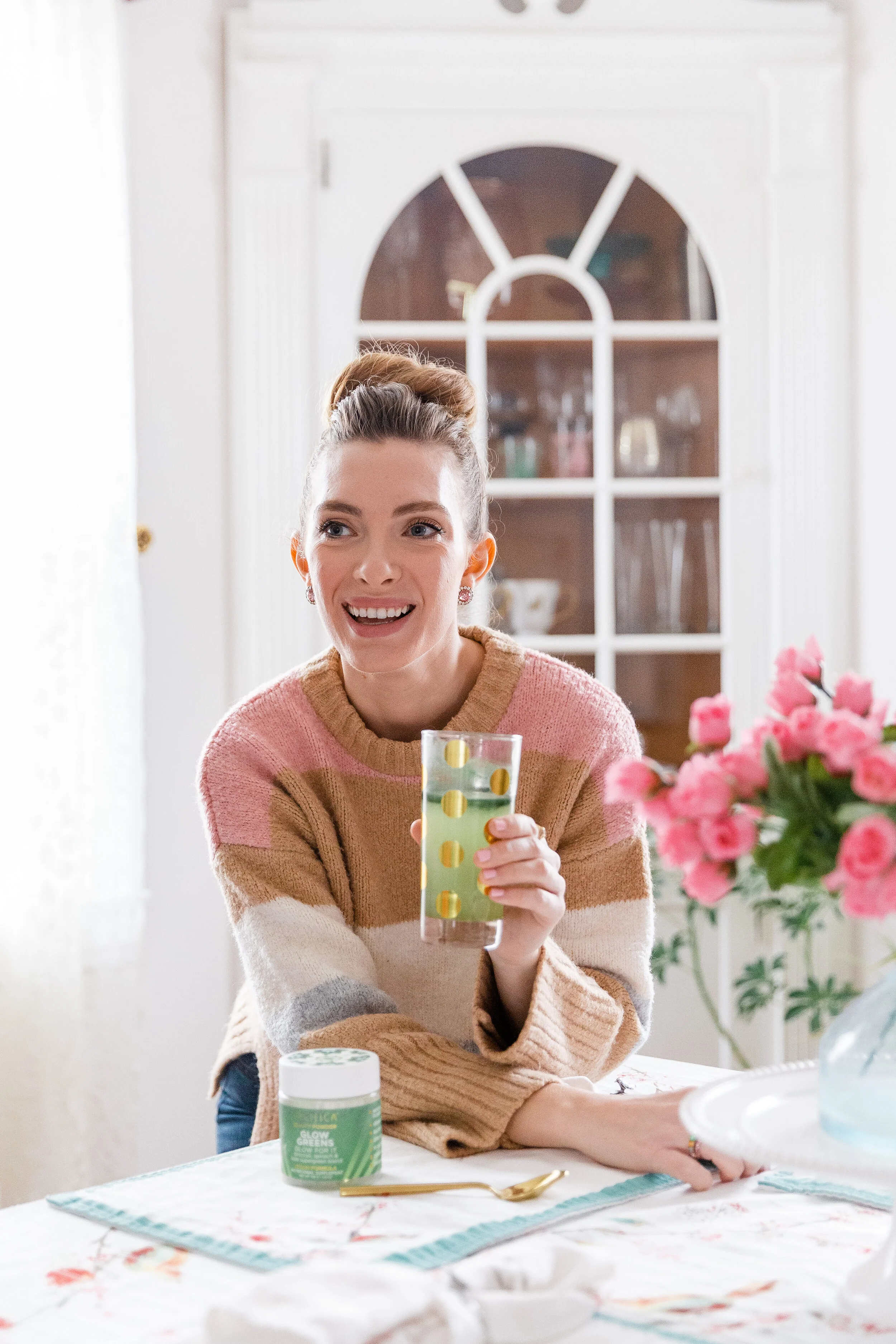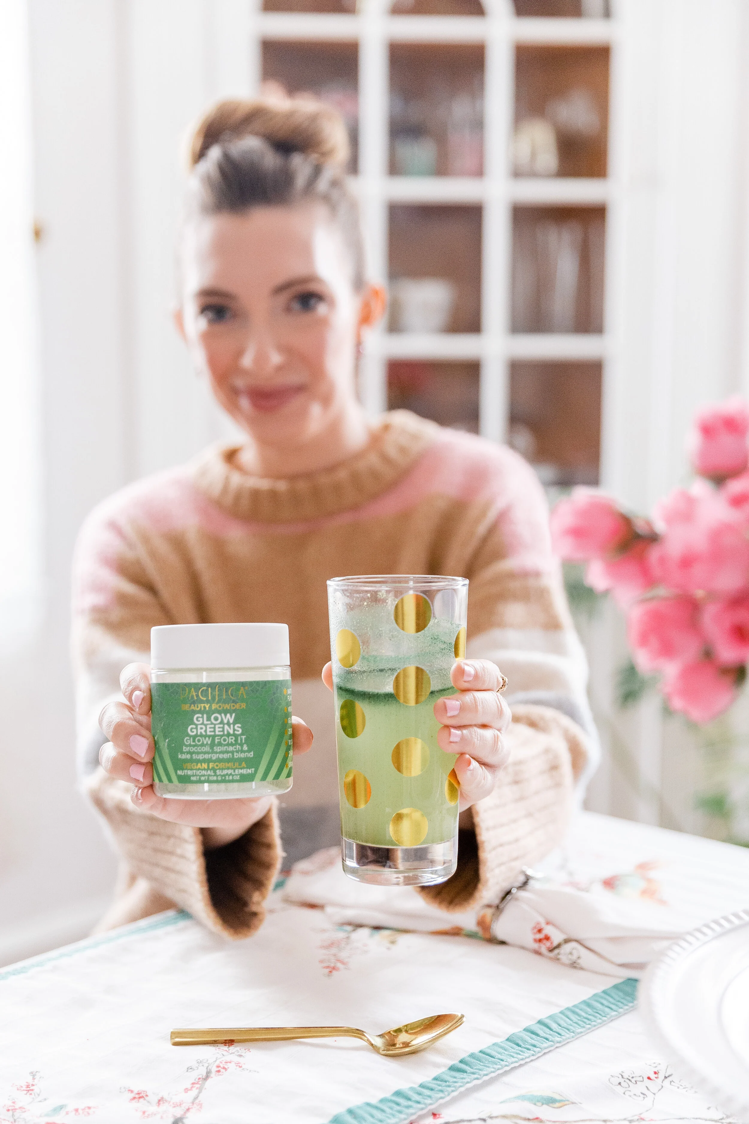 With health on my mind, I wanted to share one way I not only get more water in my diet (one of my new years goals), but also more greens as well. I tend to stock up on the Glow Greens Beauty Powder whenever I see it be it at Target, browsing on Amazon, or even at TJ Maxx, where I picked up my most recent container *on sale*. I’ve been using this powder in my water for about one year now and cannot get enough of it. I add one full scoop to my water, twice daily. The flavor reminds me of lemonade so if you’re not a fan of the flavor of water or of green vegetables, this is for you. It’s vegan with a blend of 7 super greens including broccoli, spinach, kale, and ginger for that extra power punch. I always feel more energized drinking it, plus I have the peace of mind that I’m adding in some incredible greens to my diet that I may not get everyday. If used daily, one container lasts me about one month and in my opinion is worth every penny. It ranges from $10-13 depending where you pick it up. There are other powders as well, including slay all day, wake up beautiful, and seek balance, though I have never tried any of them to attest to their flavor or if they work. It’d be fun to try them out though!