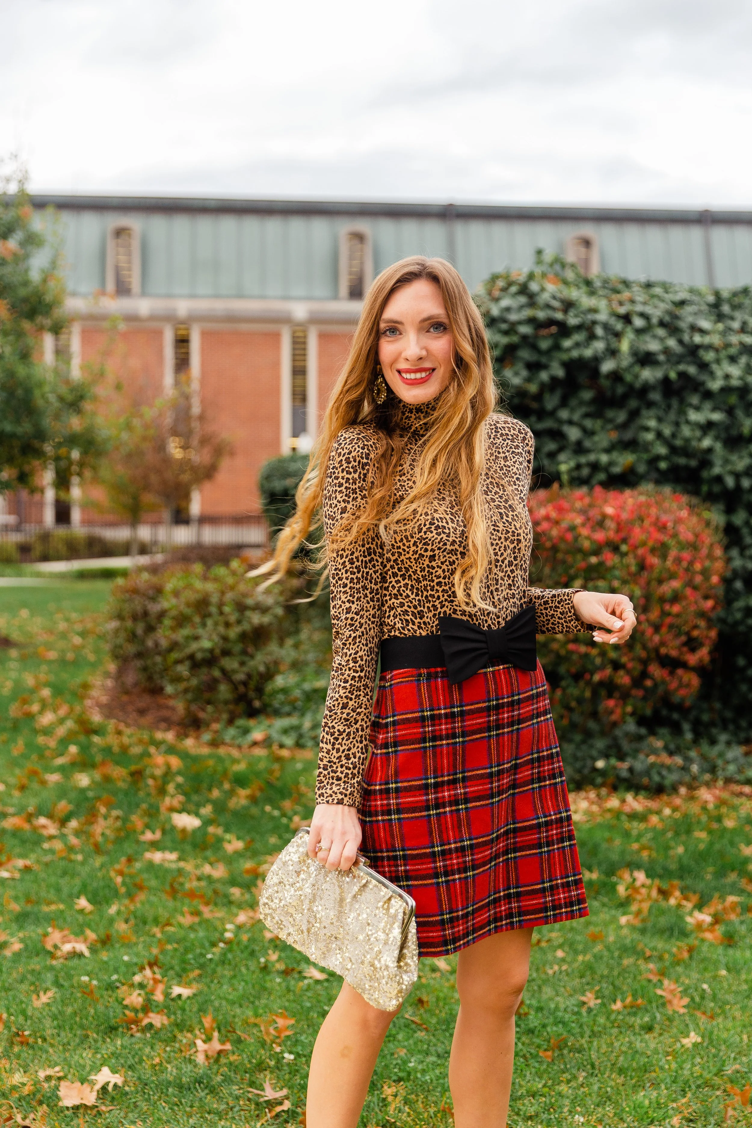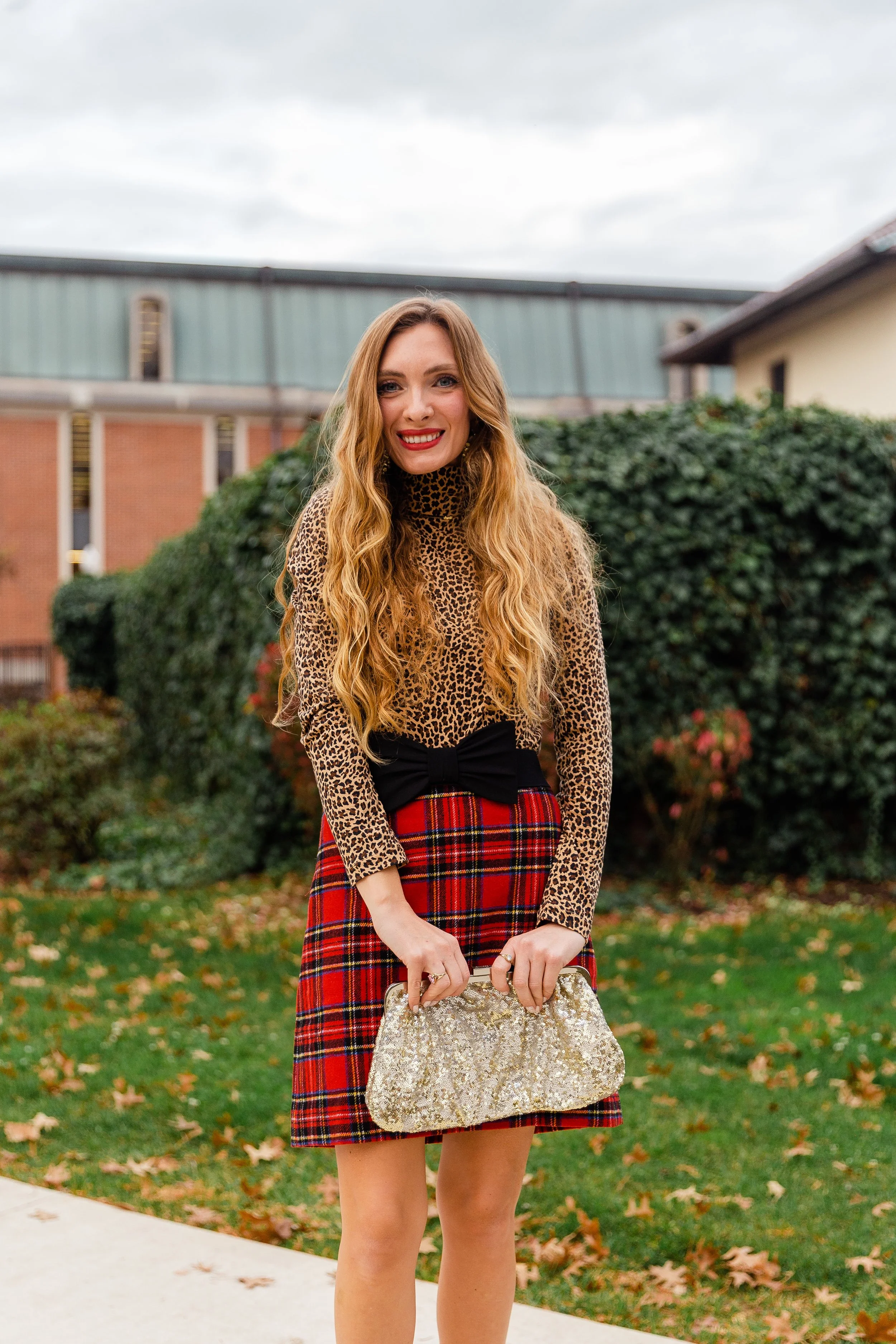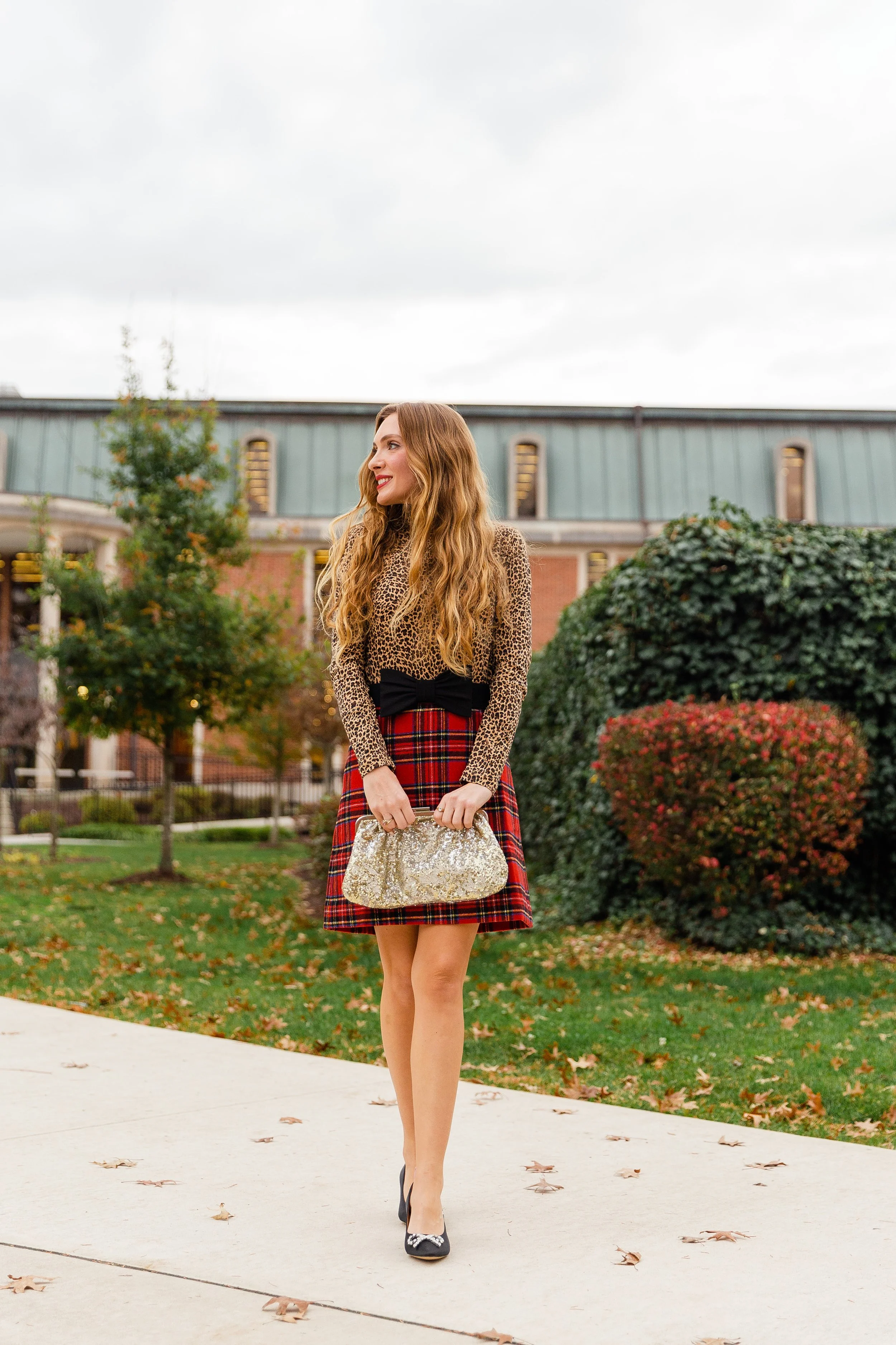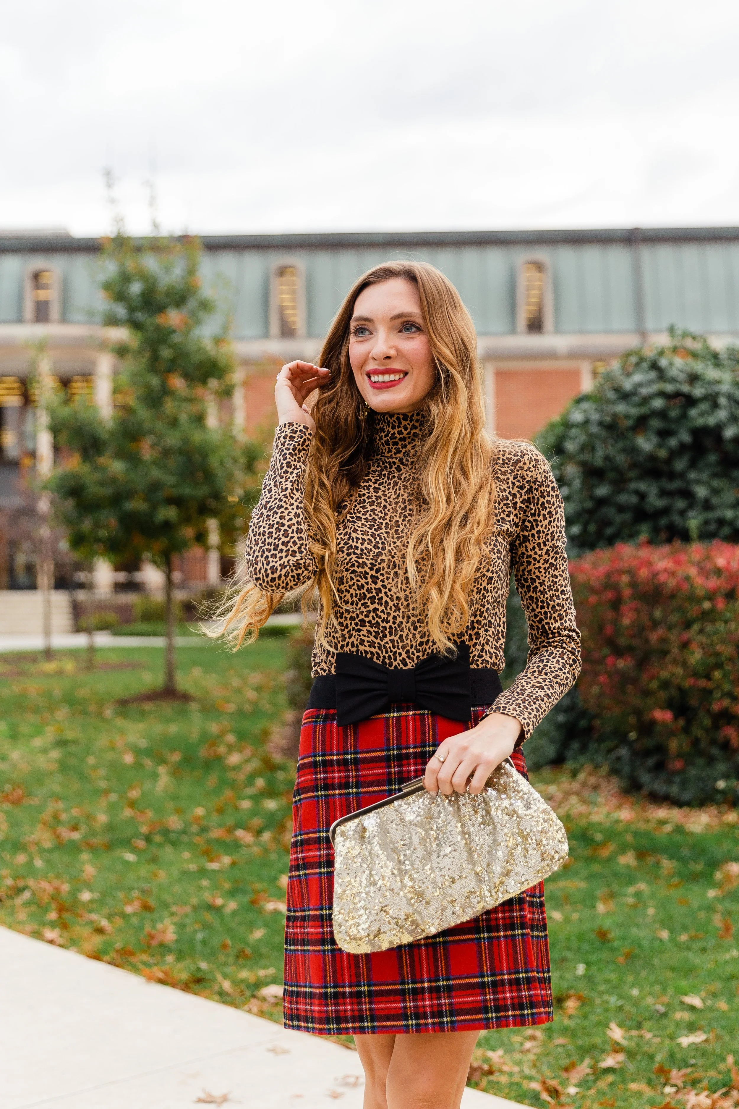 Happy Monday, friends and welcome to the new week! One of the most festive prints for the holidays is plaid and one of my favorite prints to mix it with is leopard. It creates an eye catching ensemble that feels fun and chic at the same time. As you know, I typically use leopard almost like a neutral, as it pairs so well with many different colors and patterns alike. The leopard turtleneck top is fantastic for layering underneath sweaters or worn on its own. It’s very lightweight making it an ideal layering piece. The plaid skirt is a timeless classic that can be worn all autumn and winter long. I especially love pops of red with a snowy backdrop. I’m absolutely head over heels for these crystal bow kitten heels too! Embellishments and some sparkle always add that special touch to any look. Life is too short not to sparkle!