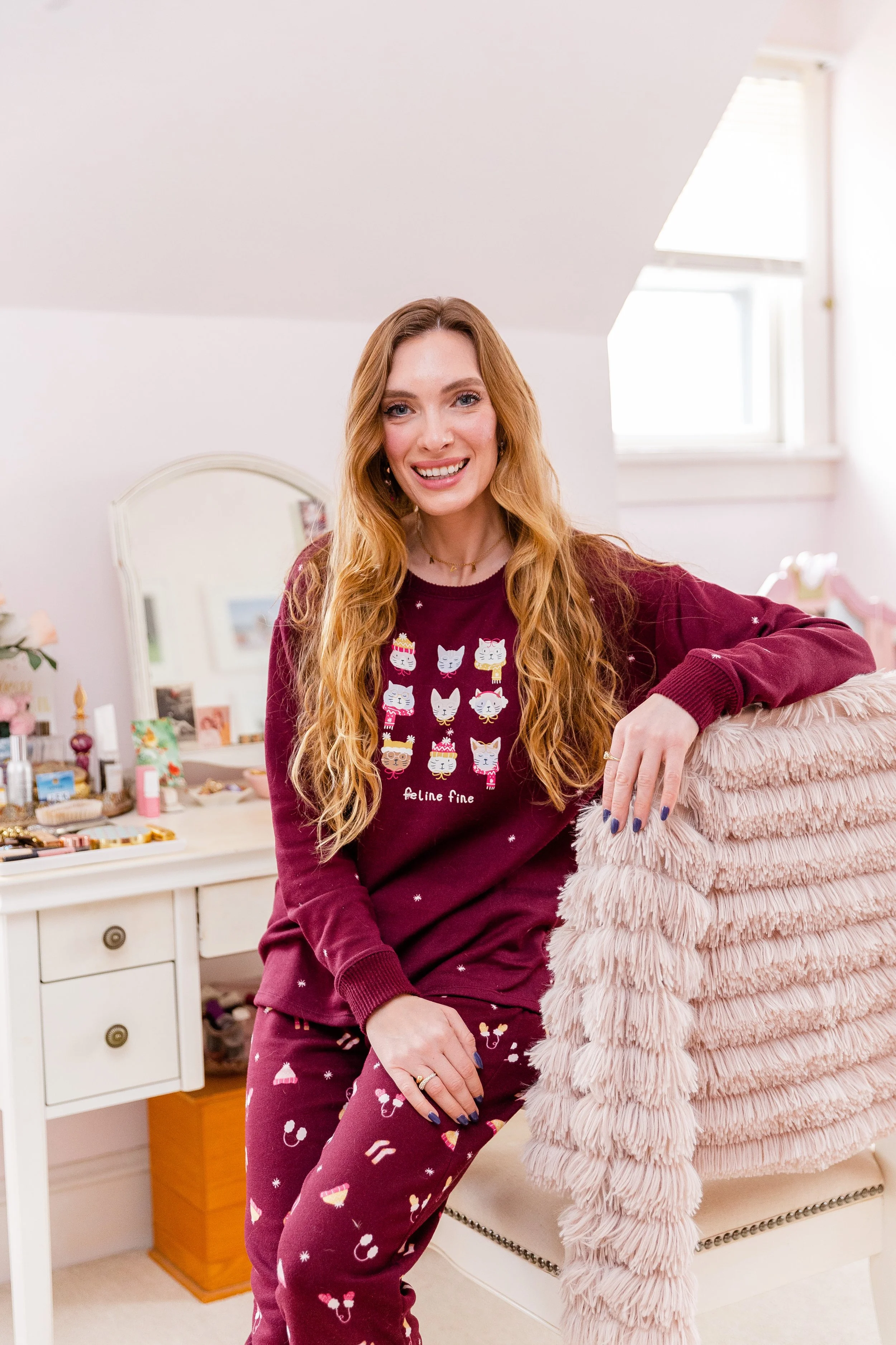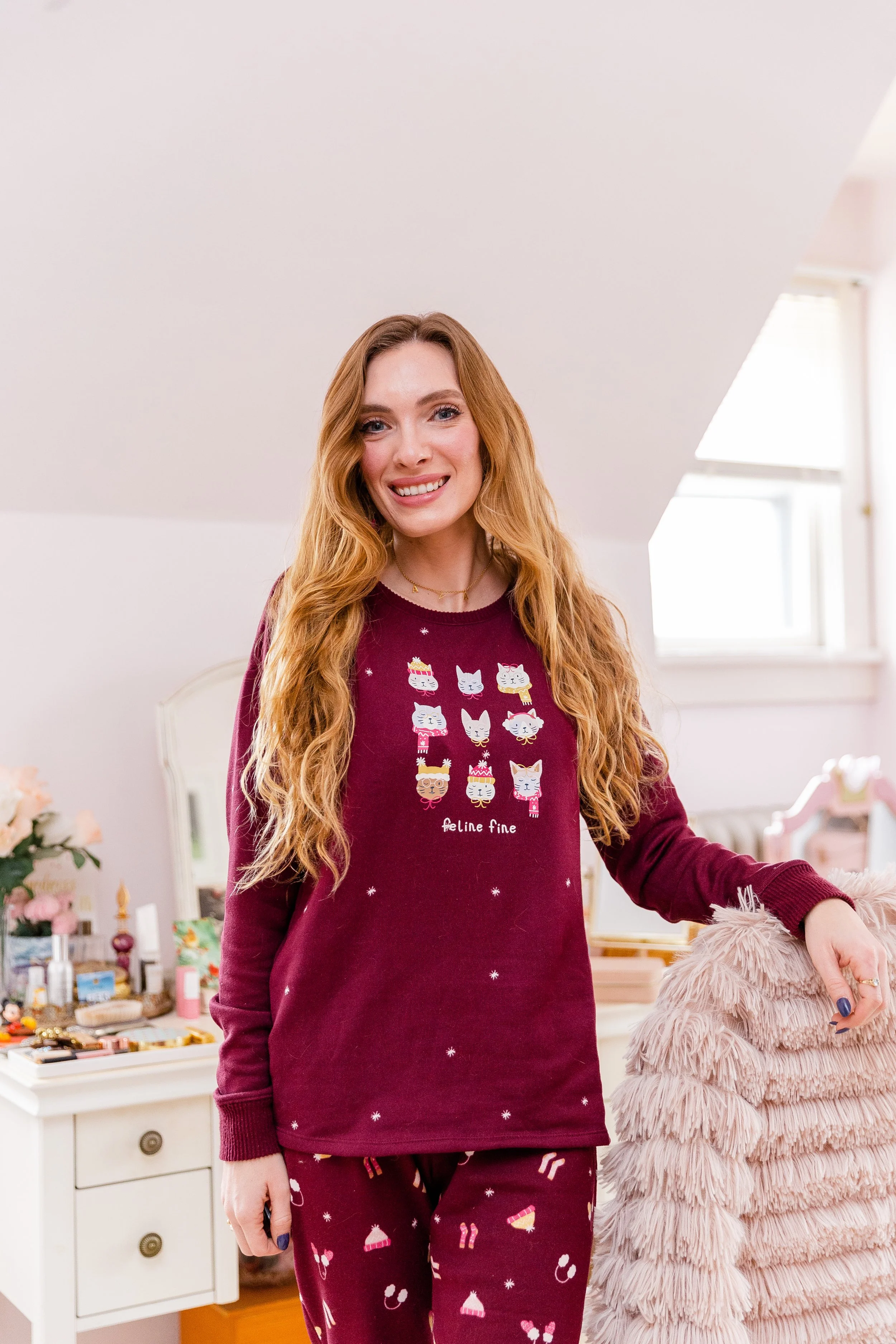 Happy Feline Fine Friday, friends! These cozy pjs are perfect to snuggle up in during the cold winter evenings. They have a light fleece lining that I adore. They’re incredibly soft and keep me nice and toasty. The cats wearing winter gear is simply adorable too! We’re a big cat family so these truly were a winner. They fit true to size.