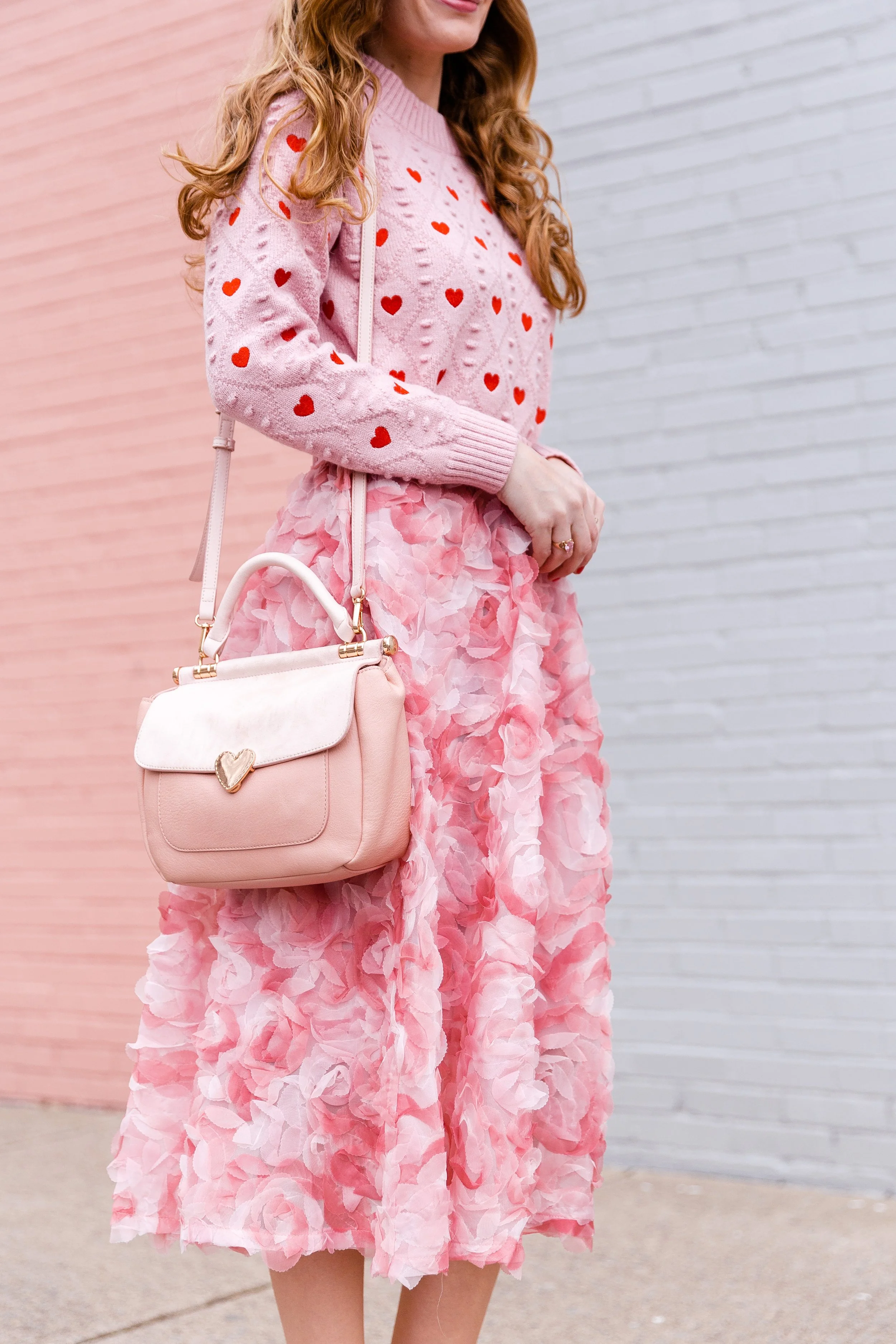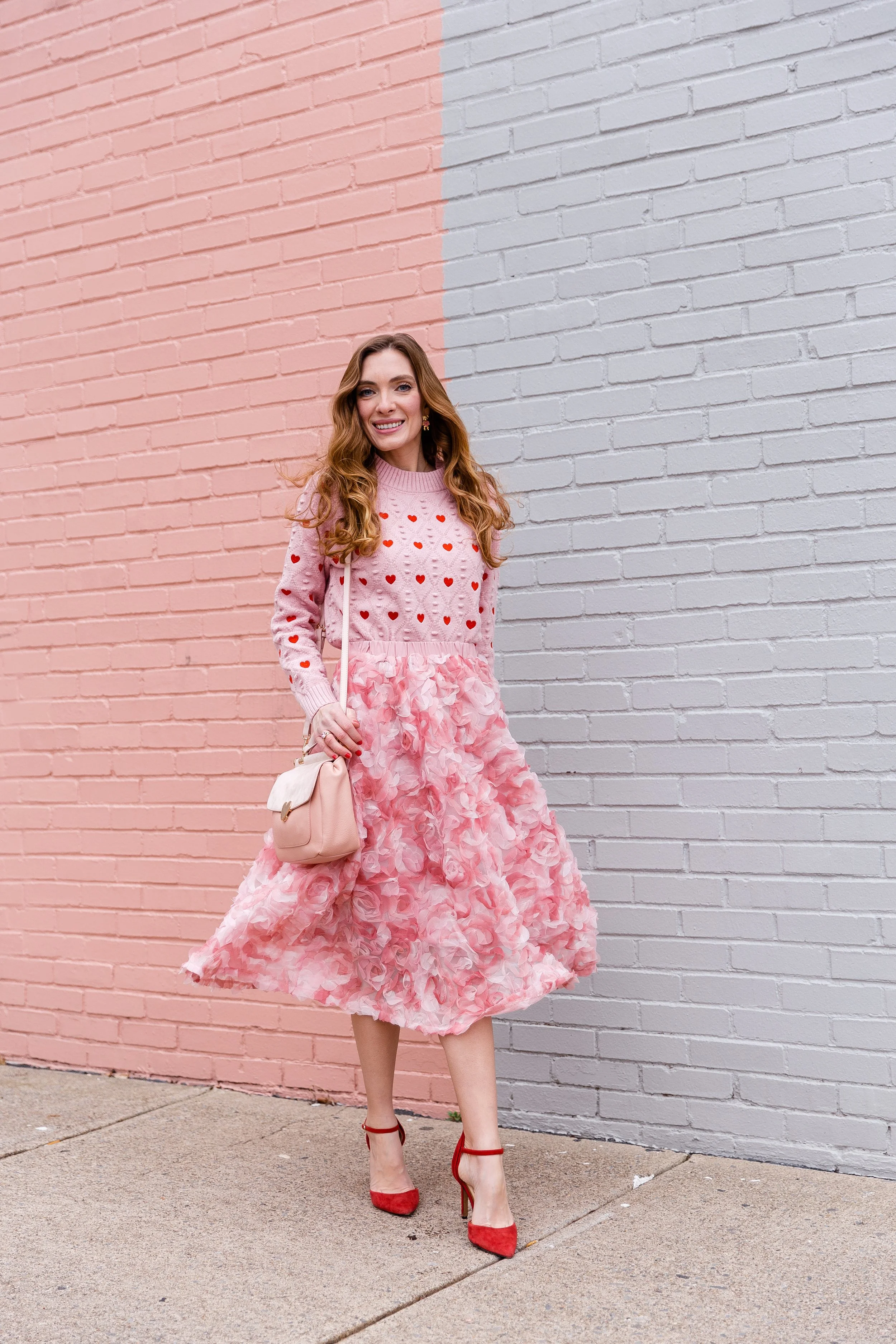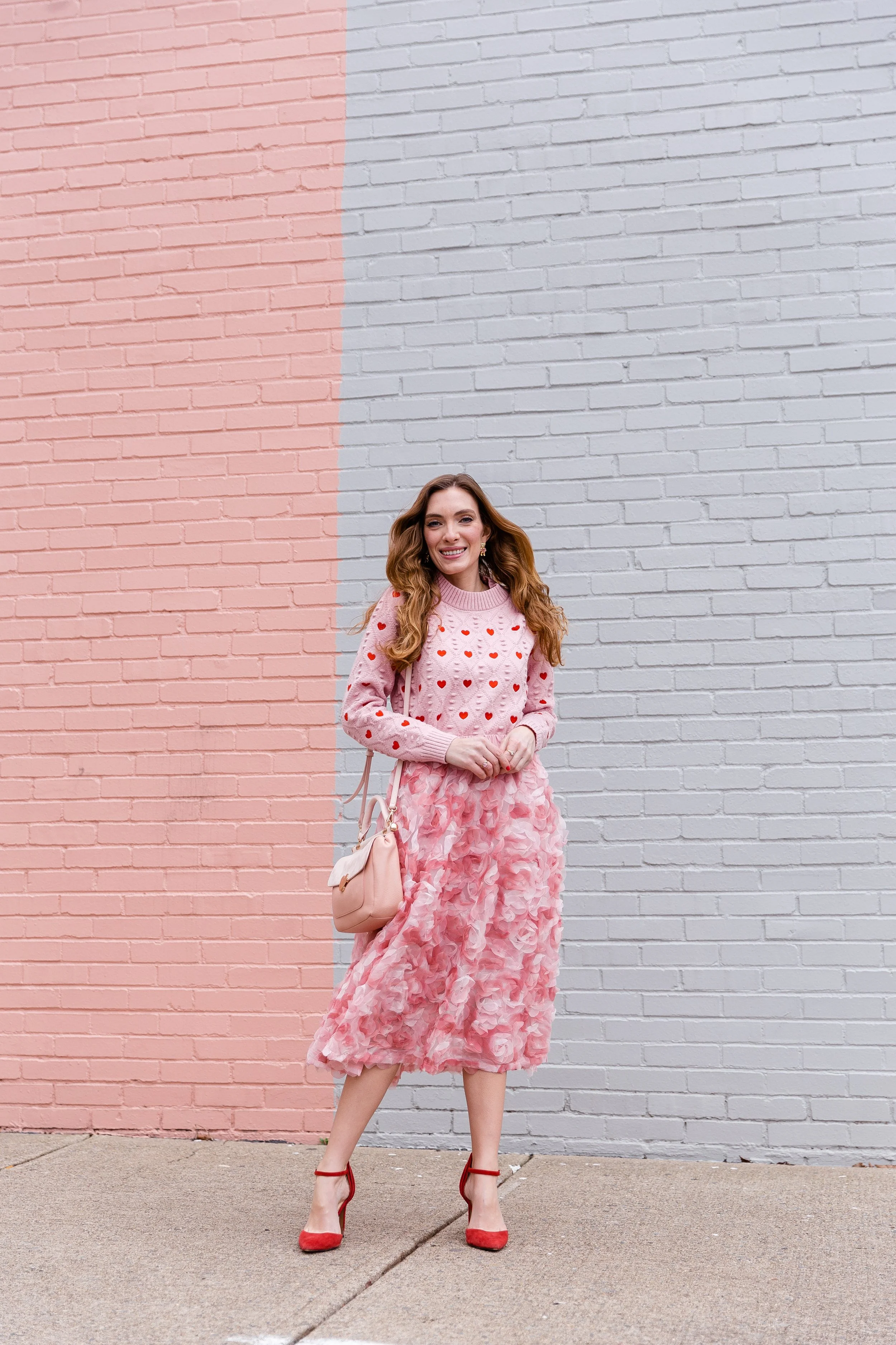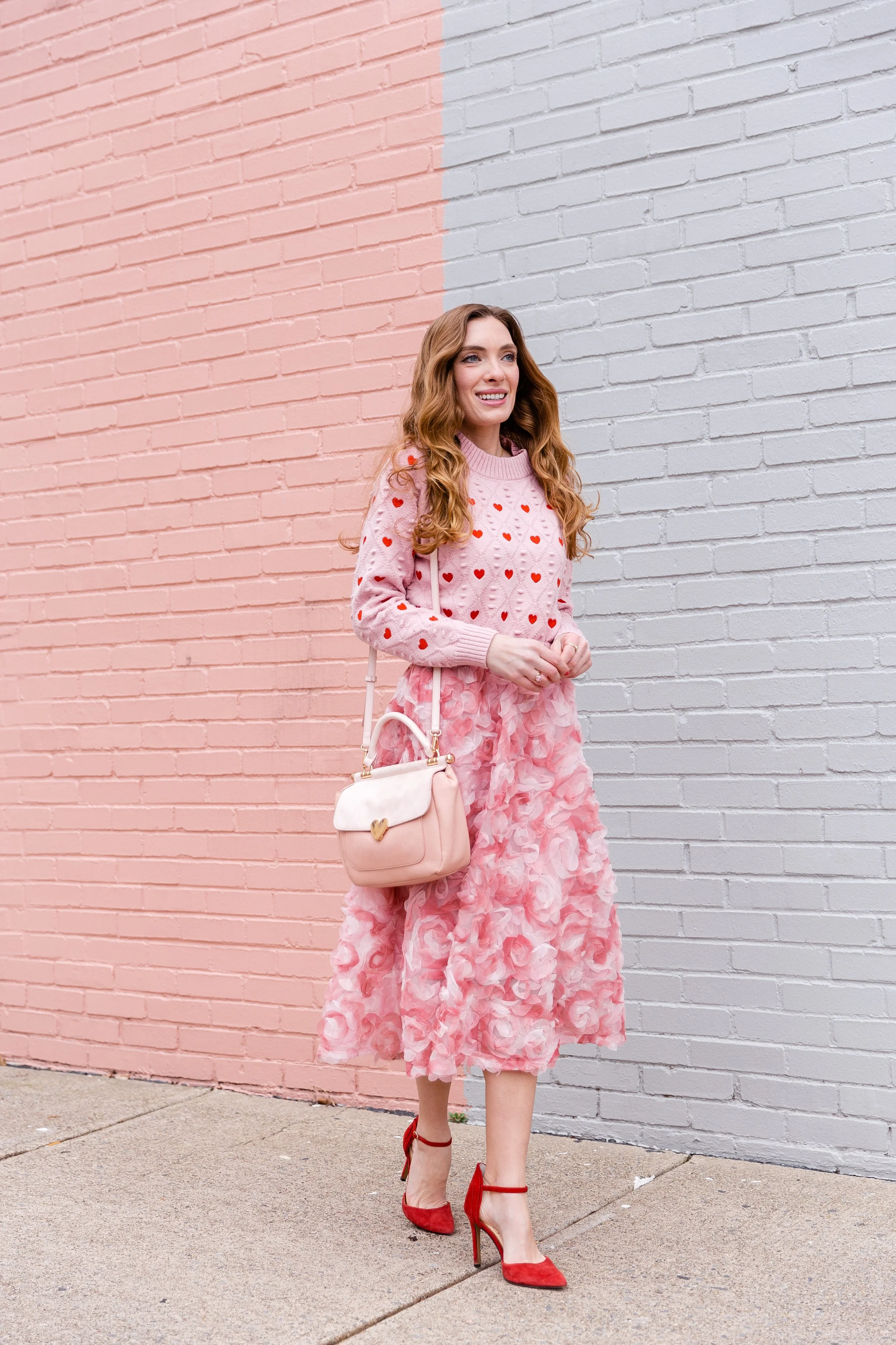 Pink Heart Sweater c/o || Pink Rose Tulle Skirt c/o || Red Dress Heels || Pink Heart Bag (Old, Similar)