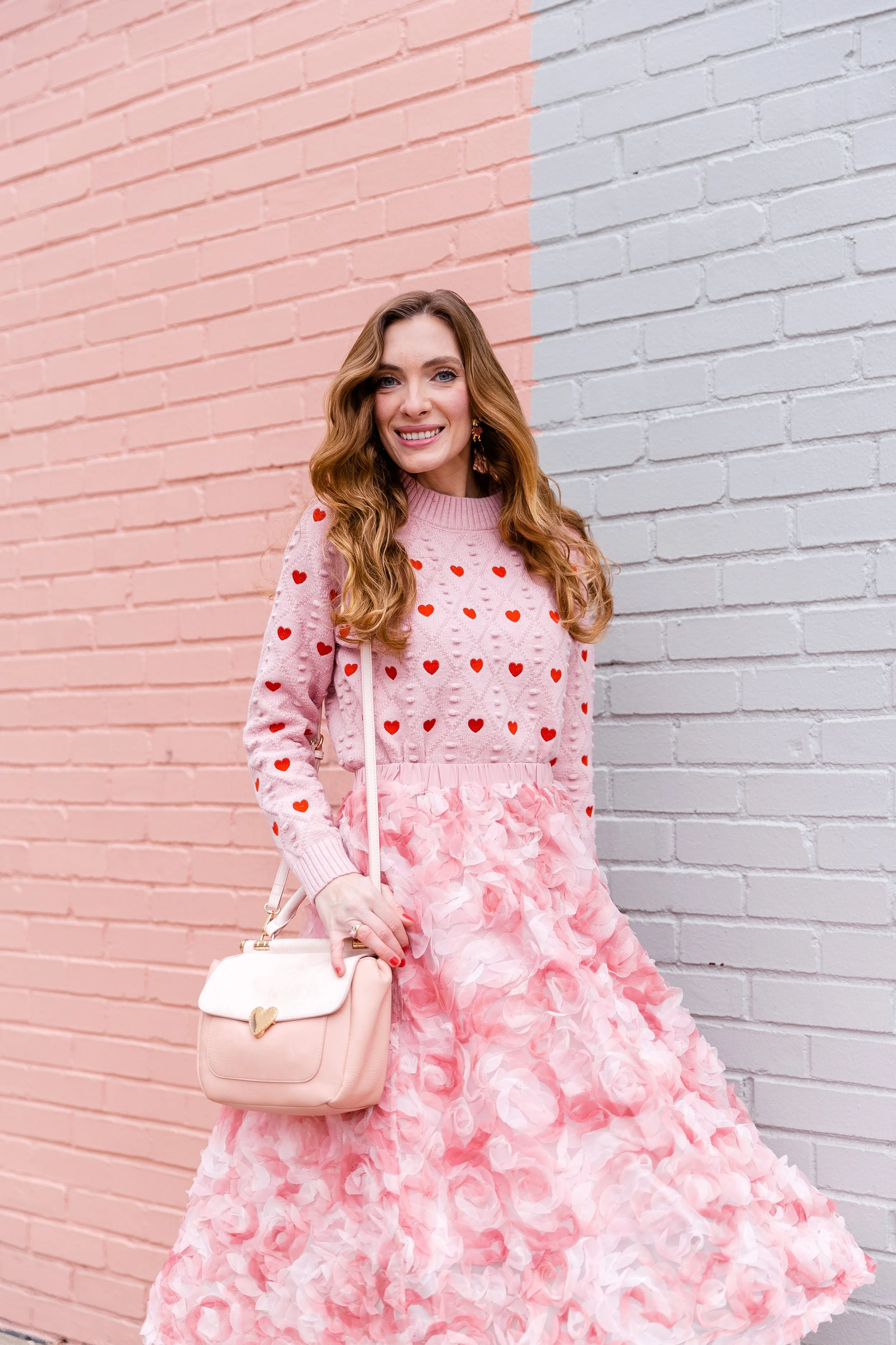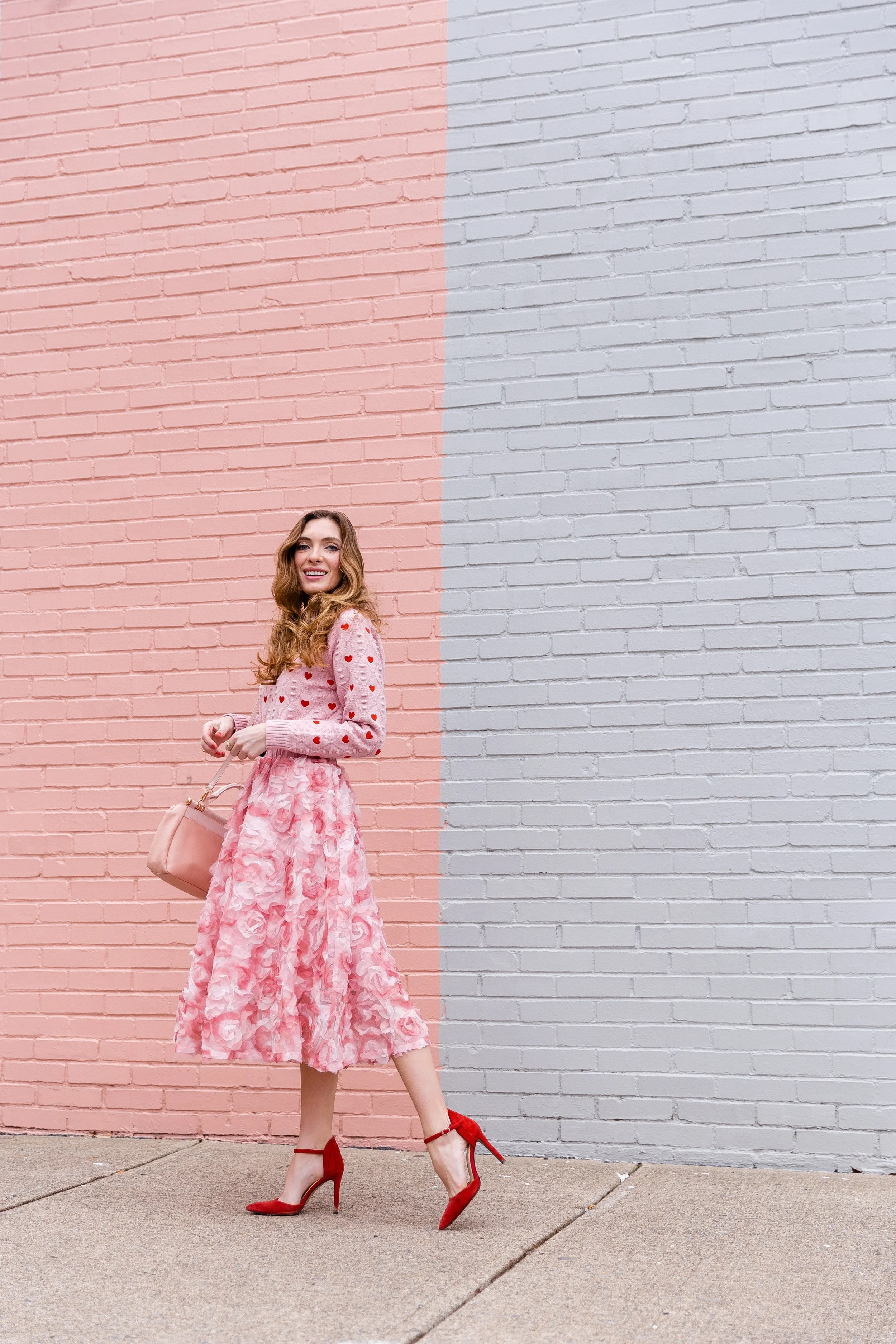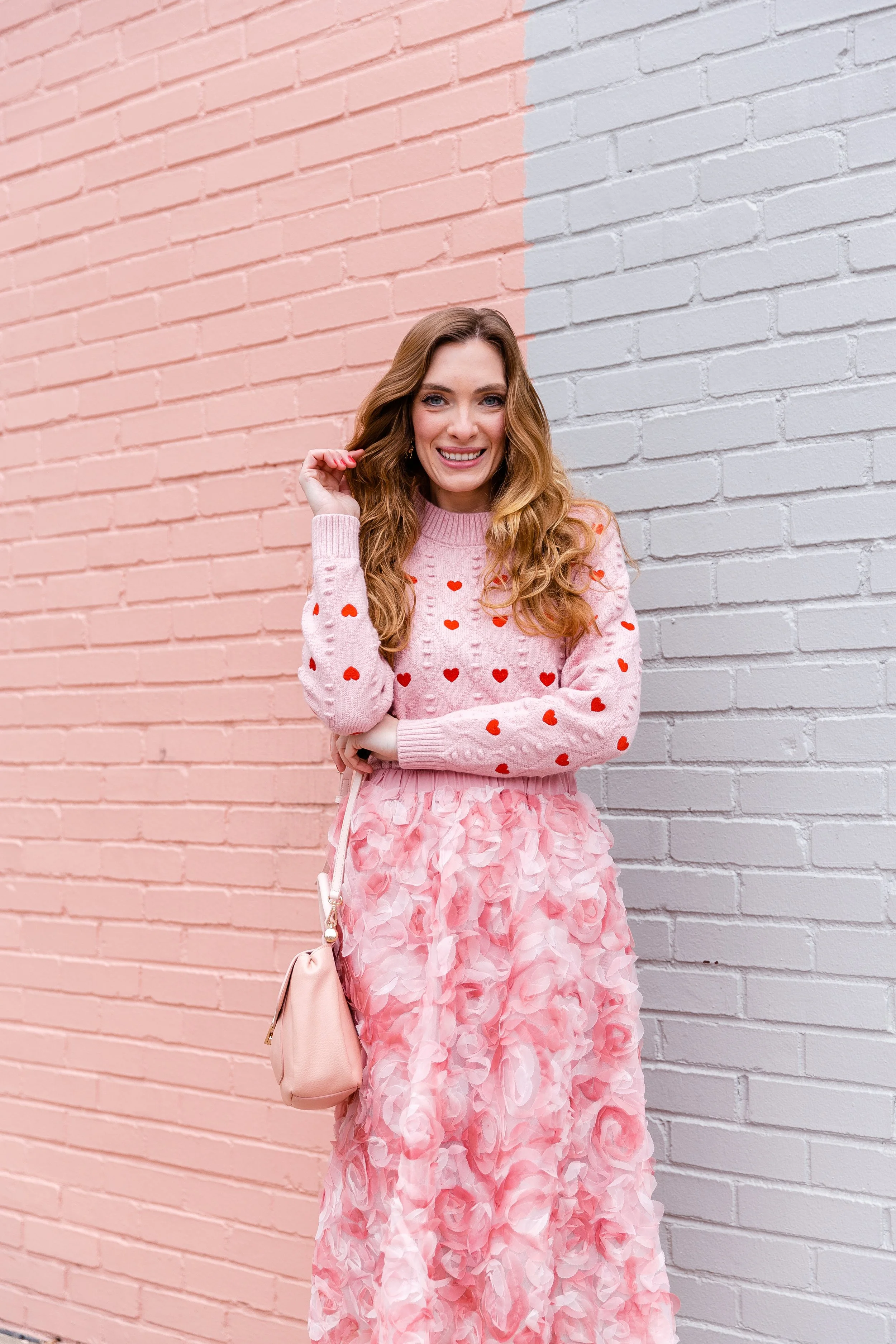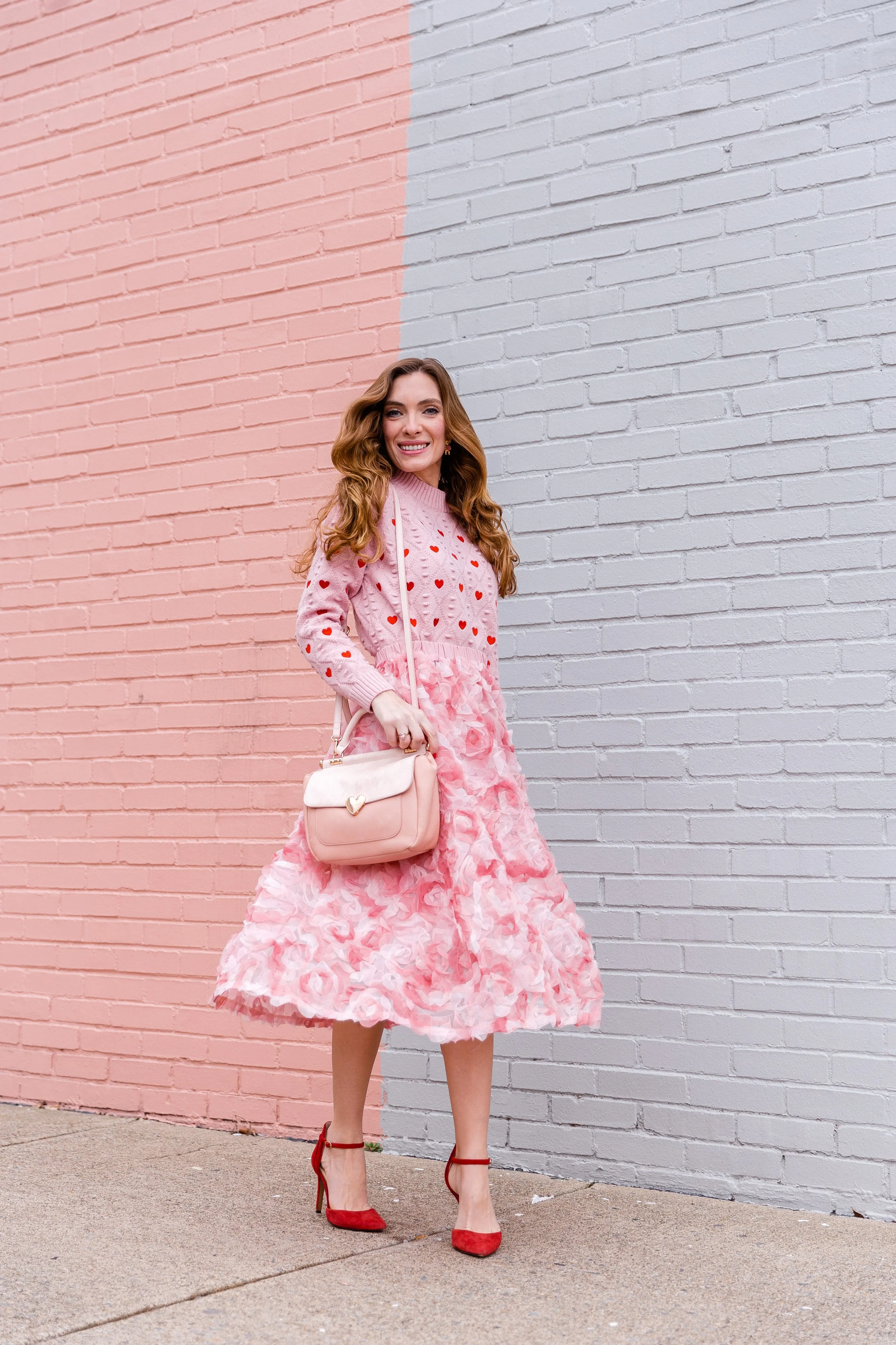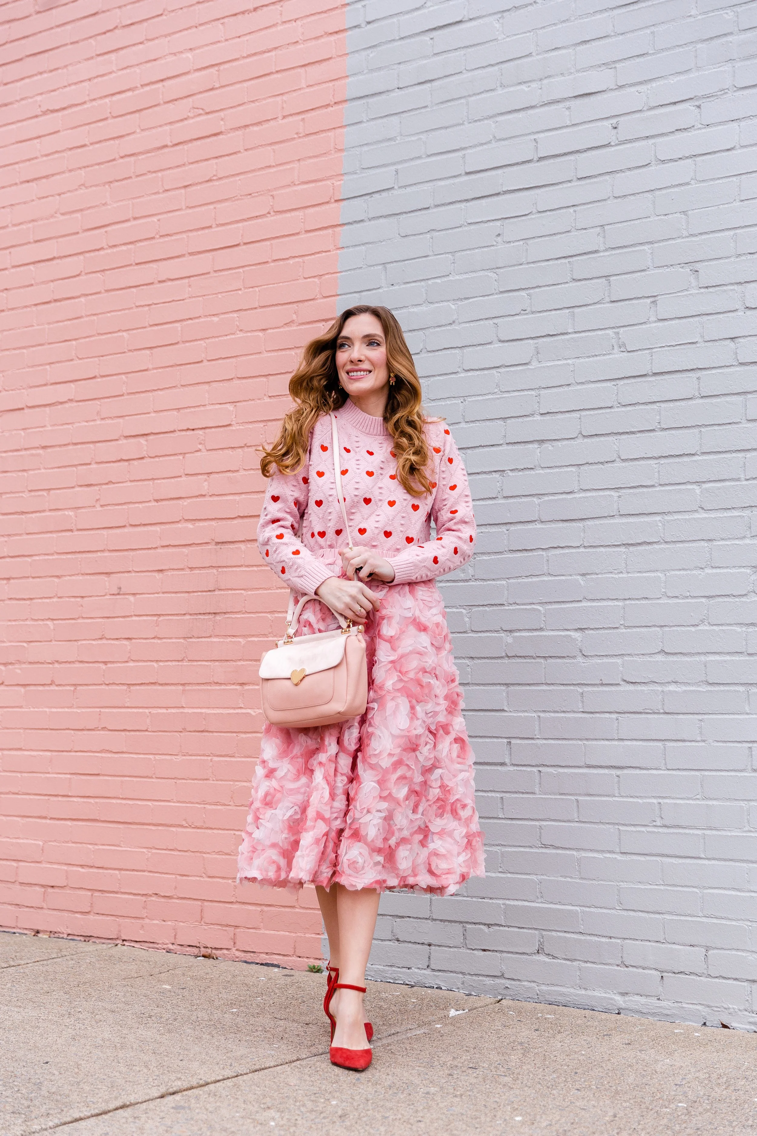 Pink Heart Sweater c/o || Pink Rose Tulle Skirt c/o || Red Dress Heels || Pink Heart Bag (Old, Similar)