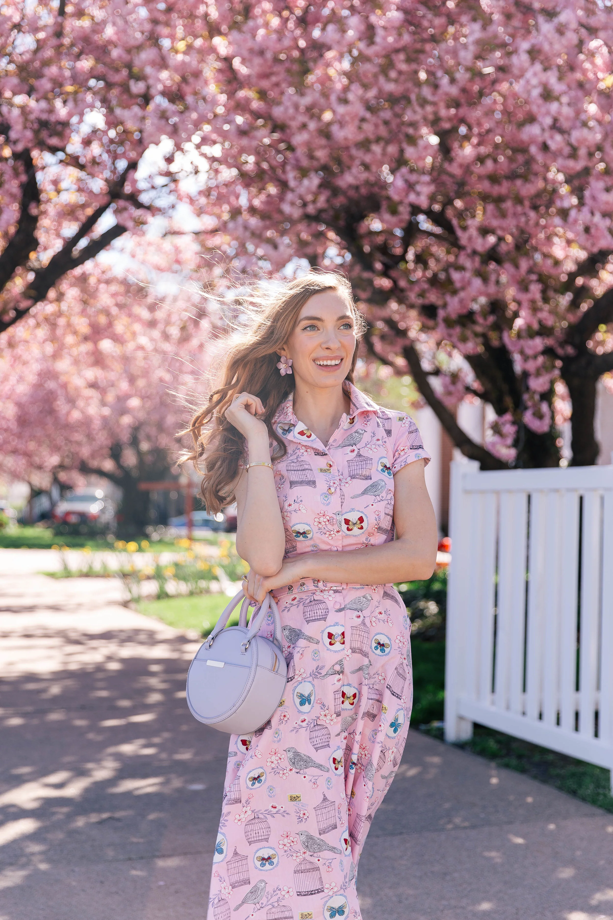 Good morning, friends! What more can I say than I’m absolutely head over heels in love with this dress. The light pink color along with the charming novelty print made up of birdcages, pinned butterflies, and postage stamps adds to the pin-up perfection. The shirt dress with a darted bodice, belt, notched collar, and darling cap sleeves all lend to the flare of the 1950s. Did I mention it has pockets too?! Simply swooning. The fit is true to size. How cute are these pearl clips!! Pearl clips are a huge trend right now, really any hair accessory, and with good reason. They have a vintage sophistication, add some charm, and the practicality of keeping your hair out of your face. I’m all about that. The set I have comes with ten pieces (two of each style) for under $13. They’re perfect for various hair styles (pinning hair back on one side, pinning back both sides, using a clip to pin a chignon…the list goes on), matching with you mini me, or using double clips on one side. Ava was so excited to wear one of the clips so we would match! I love these photos with her and I as well. She really is the sweetest! She always kisses me whenever we take photos together and I was able to capture some of those moments above.