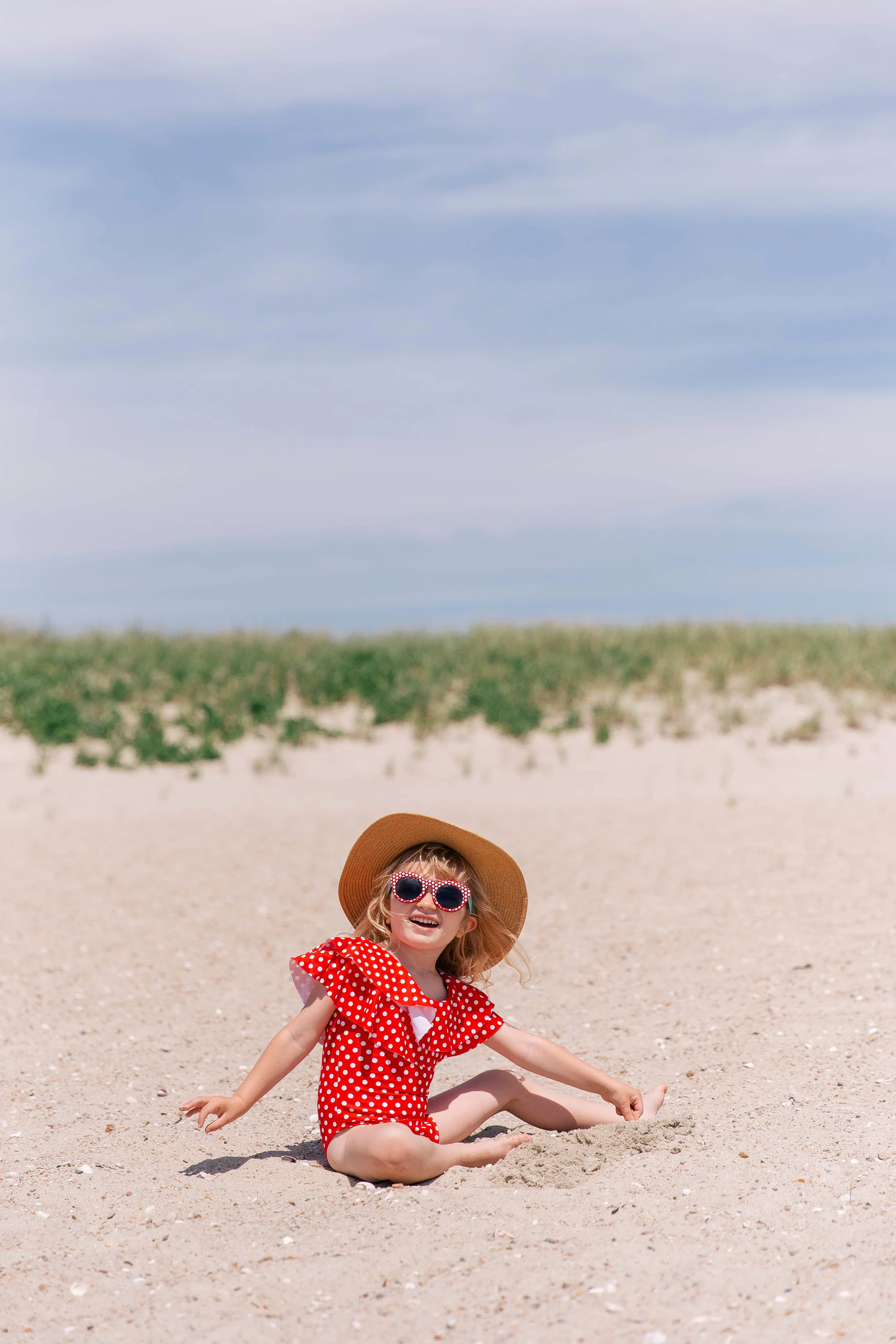 Polka Dot Swimsuit c/o || Ava’s polka dot swimsuit c/o || White Bow Straw Hat || Ava’s White Bow Straw Hat || Sunglasses || Pink & Blue Co Bracelet c/o || Woven Mules ||