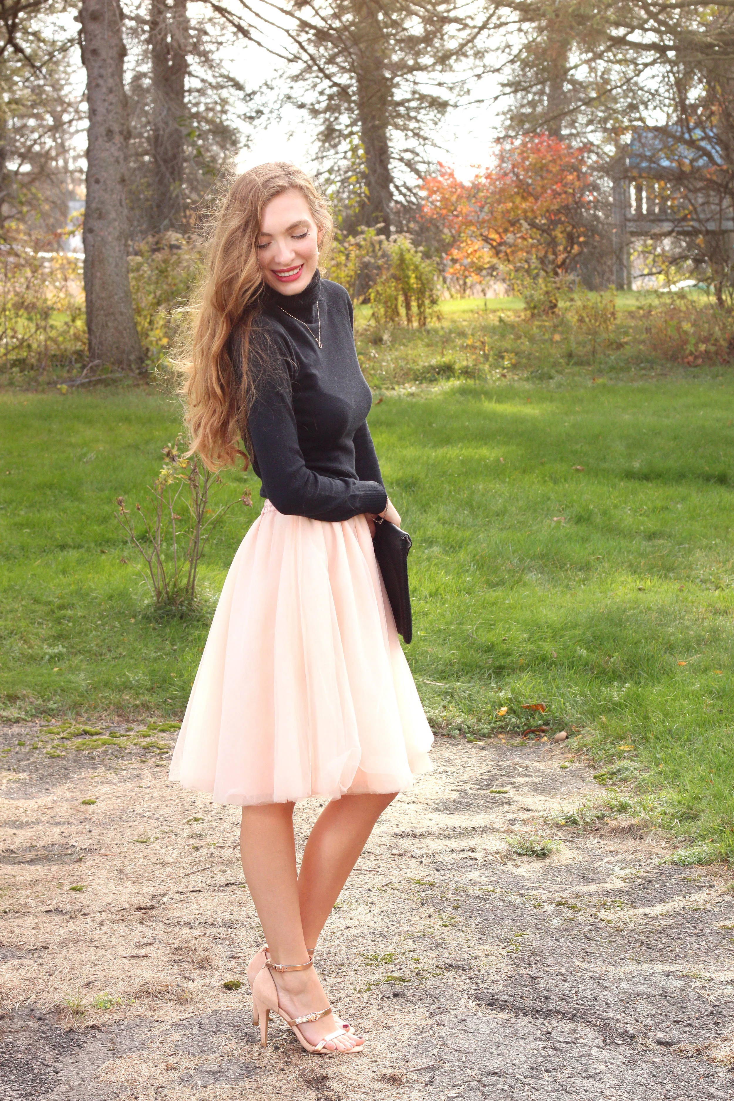 If I could do it all over again, I would definitely wear this dress. The detailing is exquisite and the full tulle skirt is the stuff that dreams are made of (extra points if you can tell me what movie that line is from!) The top has a soft blush hue with pink sequins and a sexy little cut out hole in the back. That's another reason why I'm so in love with this dress. It's modest, yet has an alluring back and some of the most beautiful detailing I've seen. No lie when I say that this is one of my most favorite dresses that I own. I wanted to wear my hair up for this look because of the back, but usually for every dance I would leave my hair down and curled.